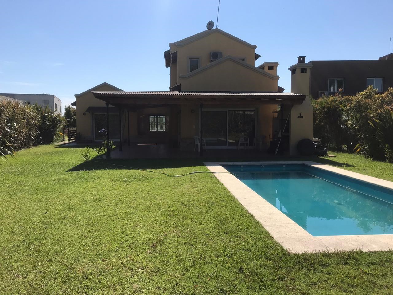 Casa en alquiler en Barrio Cerrado San Isidro Labrador de Villanueva Tigre Desarrollada en dos plantas, estilo campo, con porche en el frente. Hall de entrada. Toilette. Living-comedor amplio con vistas al parque. Cocina y comedor independiente con comedor de diario. dependencia de servicio y lavadero Entrada lateral. planta baja: un dormitorio en suite con vestidor - galerías aberturas con vidrios doble - En planta alta, dos dormitorios y un baño completo compartimentado Pisos calcáreos Jardín totalmente parquizado - parrilla - lote interno - jardín orientación oeste